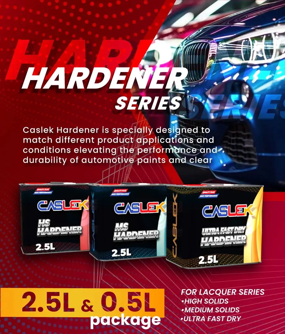 Caslek Hardener is specially designed to match different product applications and conditions elevating the performance and durability of automotive paints and lacquer.