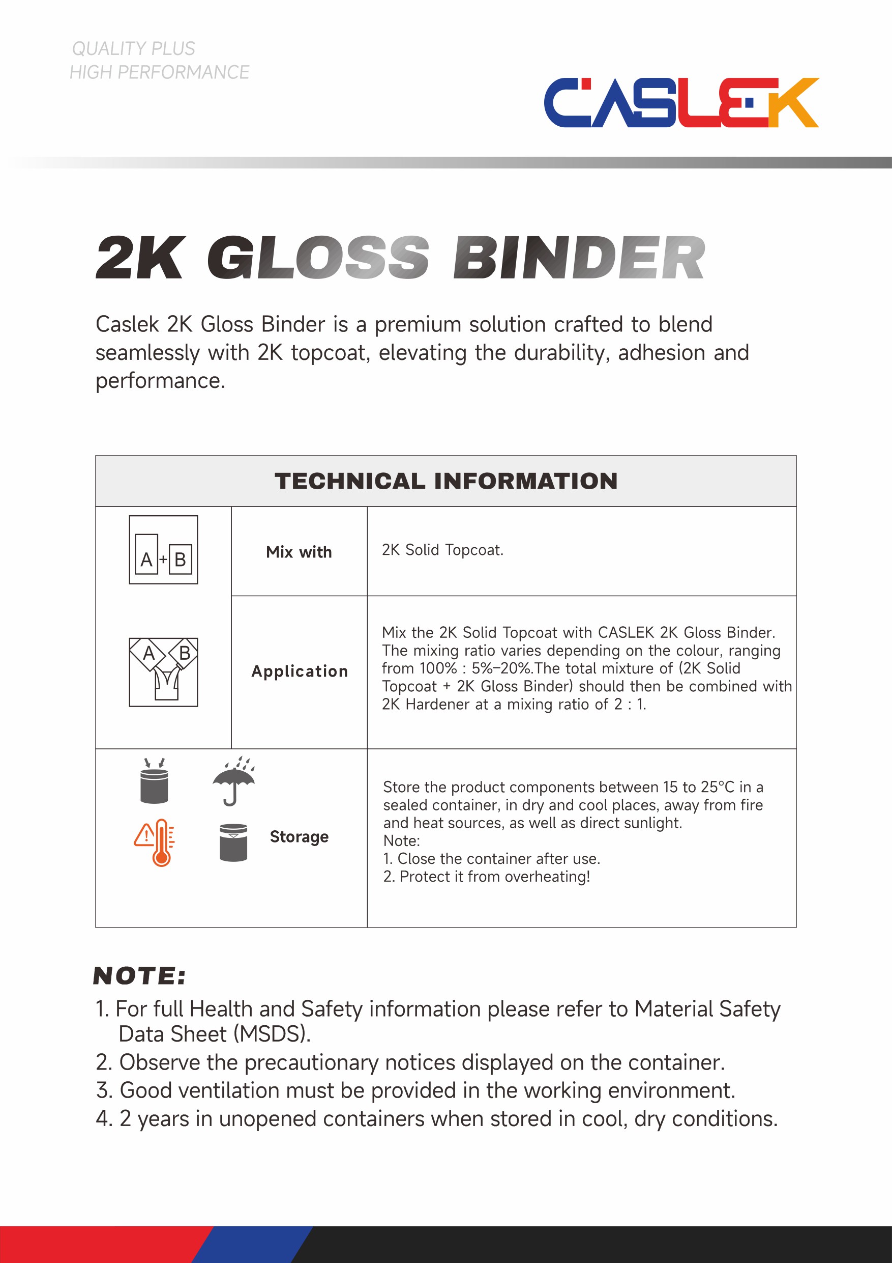 Caslek 2K Gloss Binder is a premium solution crafted to blend seamlessly with 2K topcoat, elevating the durability, adhesion and performance.